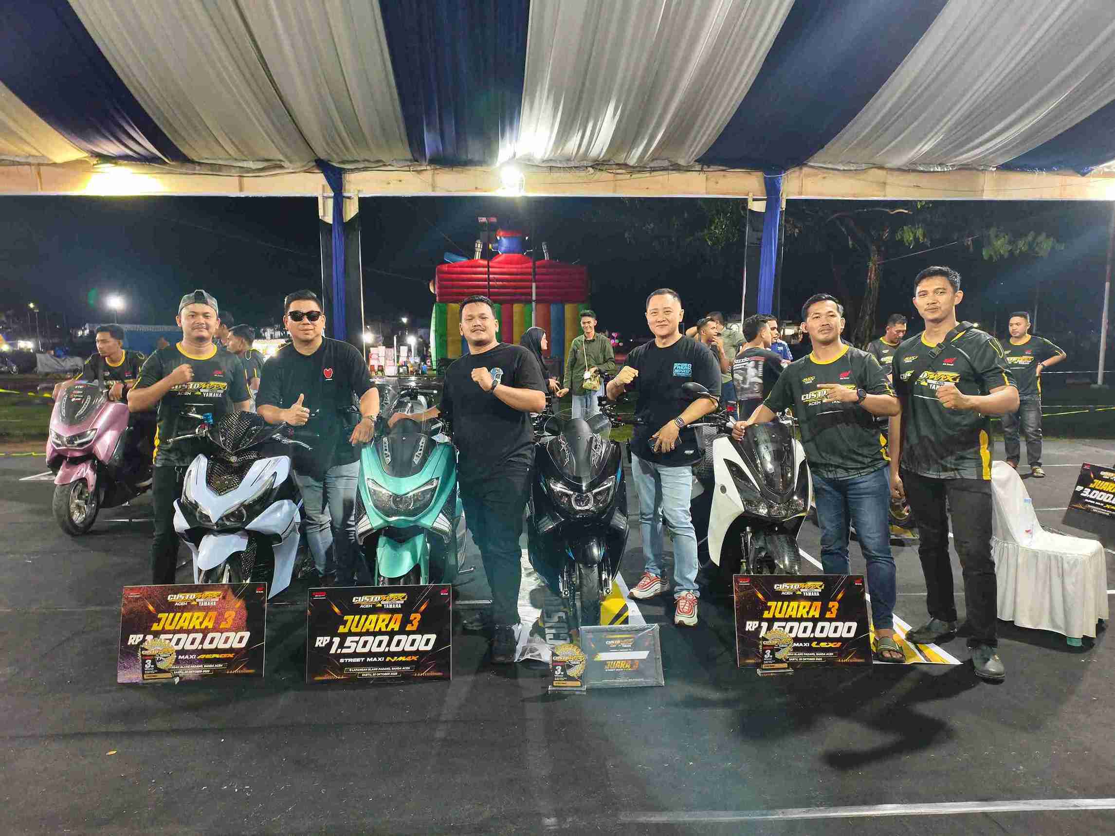 Ajang CustoMAXi Yamaha 2025 sukses digelar di Lapangan Blang Padang, Banda Aceh, pada Sabtu (25/10/2025). Event tahunan ini kembali menjadi wadah bagi para pengguna XMAX, NMAX, AEROX, hingga LEXi untuk menampilkan karya modifikasi terbaik mereka.