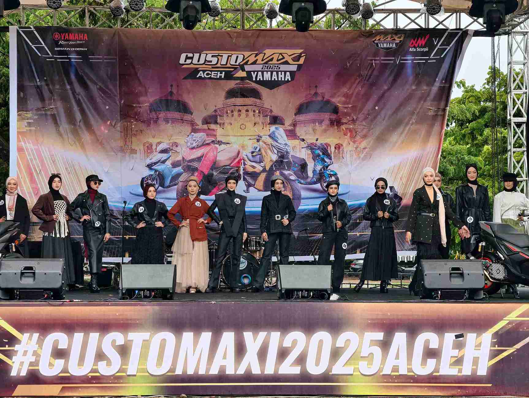 Tidak hanya menampilkan motor-motor modifikasi, CustoMAXi 2025 Aceh juga dipenuhi beragam kegiatan hiburan bagi masyarakat. Mulai dari kompetisi karaoke, hijab fashion show, senam POUNDFIT, hingga live performance barista, semuanya menambah semarak suasana acara. Puncak kemeriahan ditutup dengan penampilan spektakuler dari APACHE dan Scorising Semester yang mengguncang panggung hiburan malam itu.
